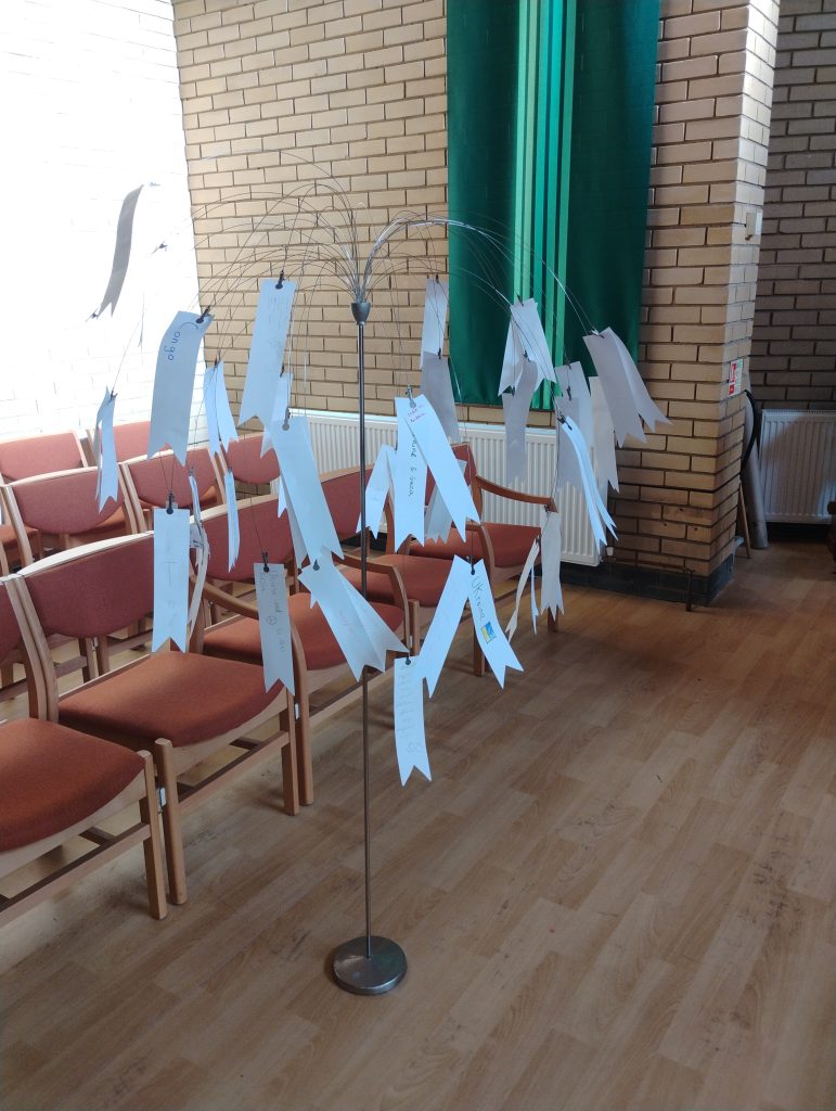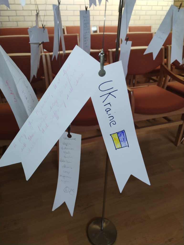 The Brownies and Scouts gave out and collected in the congregations ribbon prayers – where everybody thought of countries that are at war today.