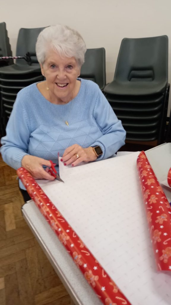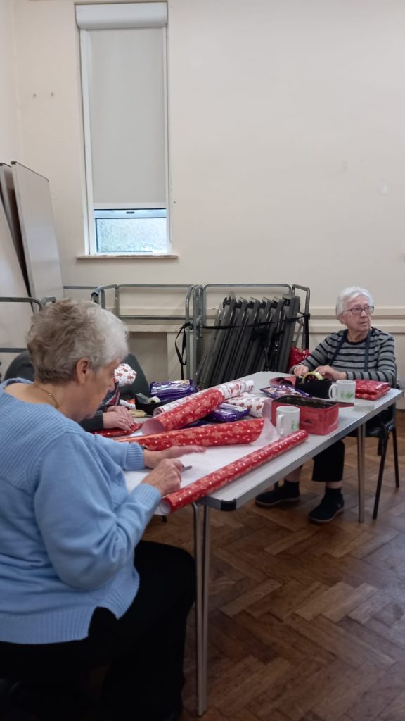 We are busy preparing for our Christmas Fayre. Today we wrapped with festive Christmas paper.